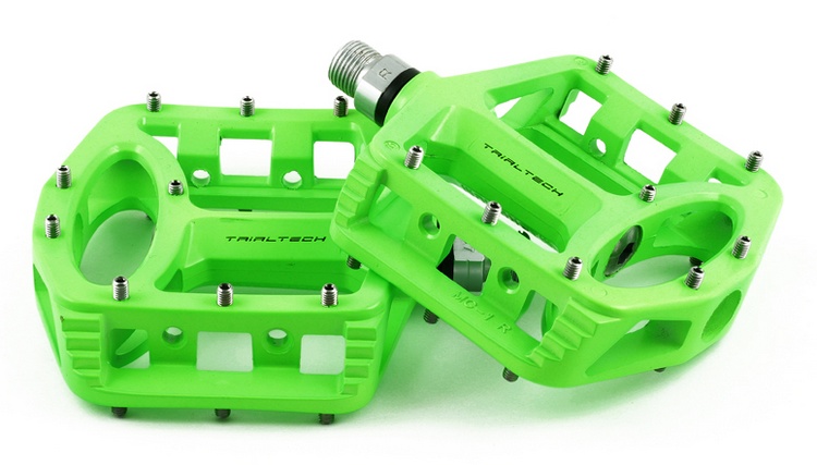 The Sport Magnesium pedals feature a strong axle CNC machined from high quality steel, while fully sealed bearings ensure they stay running smooth in all conditions. Available in powdercoat matt black, gloss white or gloss fluro green, all with a stylish printed Trialtech logo.